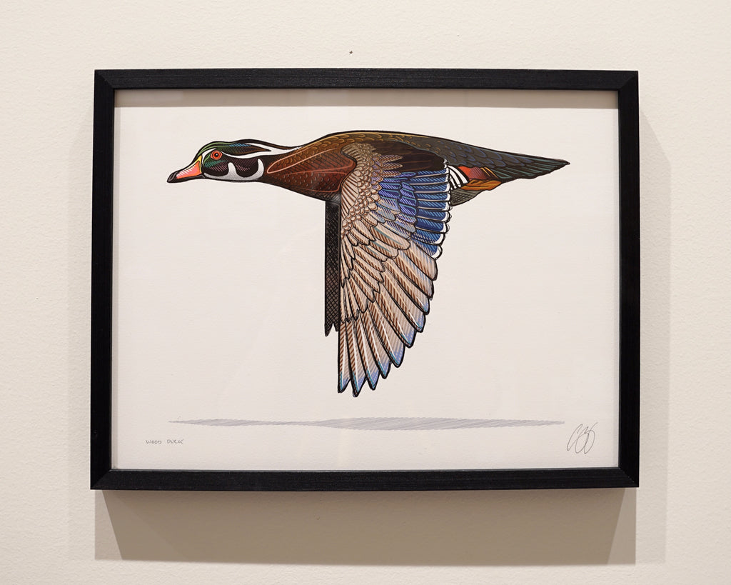 12x16 Wood Duck in a Blemished Black Wood Frame