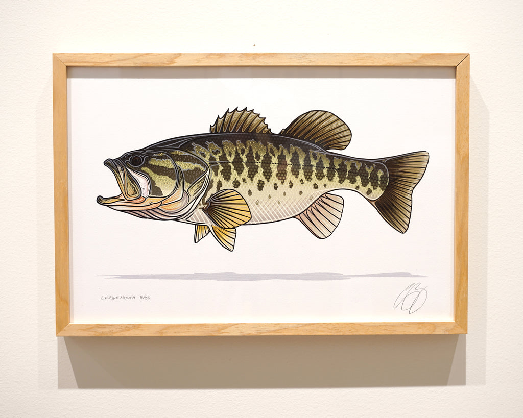12x18 Largemouth Bass in a Blemished Natural Wood Frame