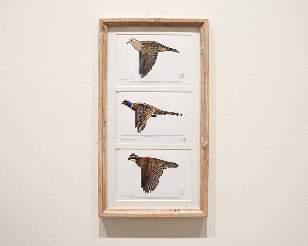 Blemished 3 Print Frame with Mourning Dove, Ringneck Pheasant, & Bobwhite Quail