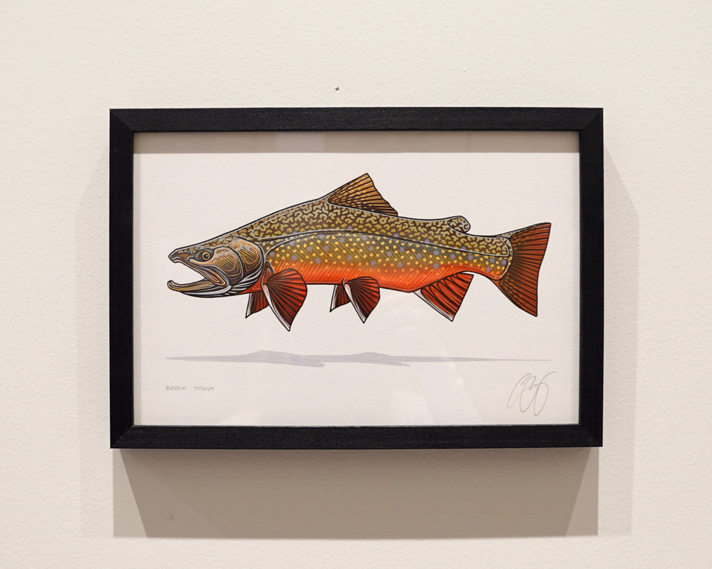8x12 Brook Trout in a Blemished Black Wood Frame