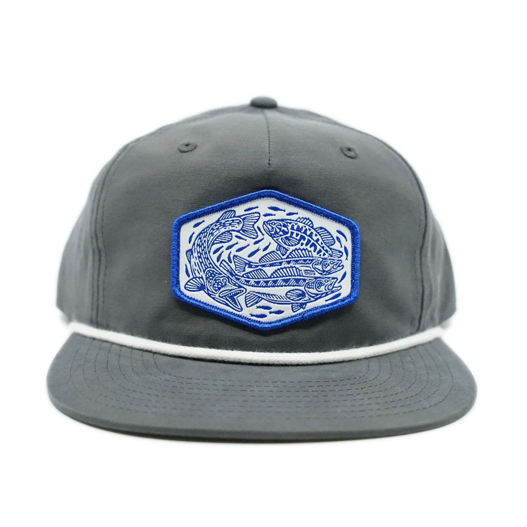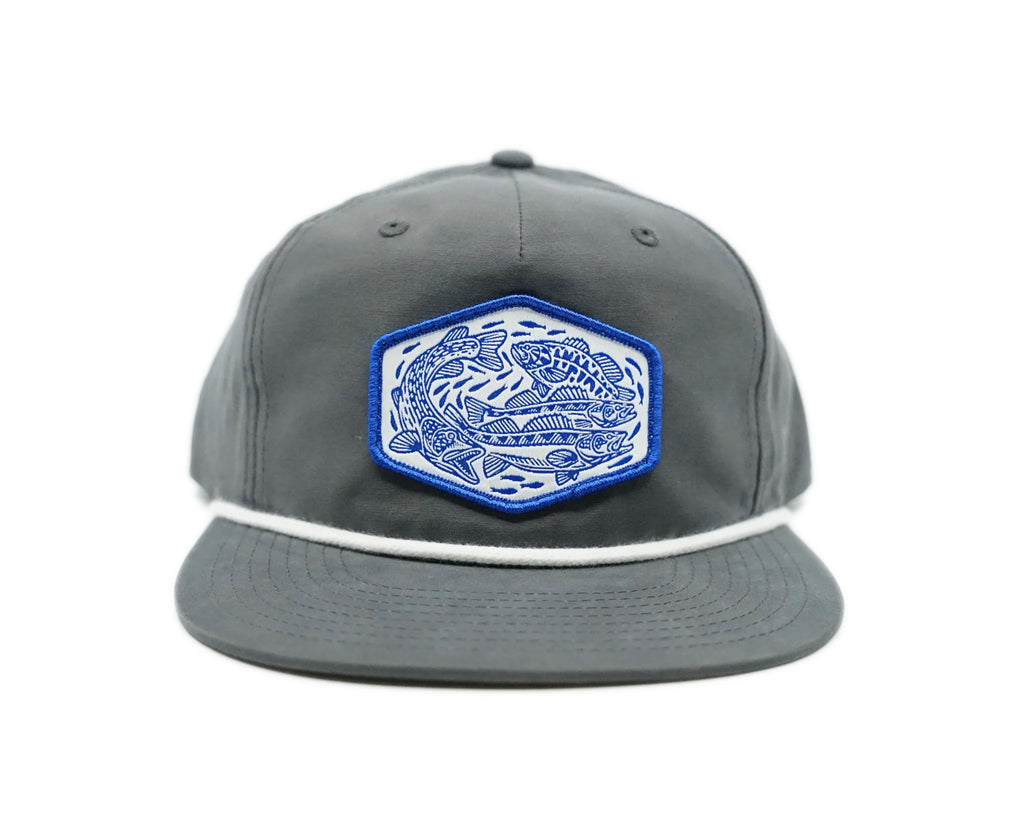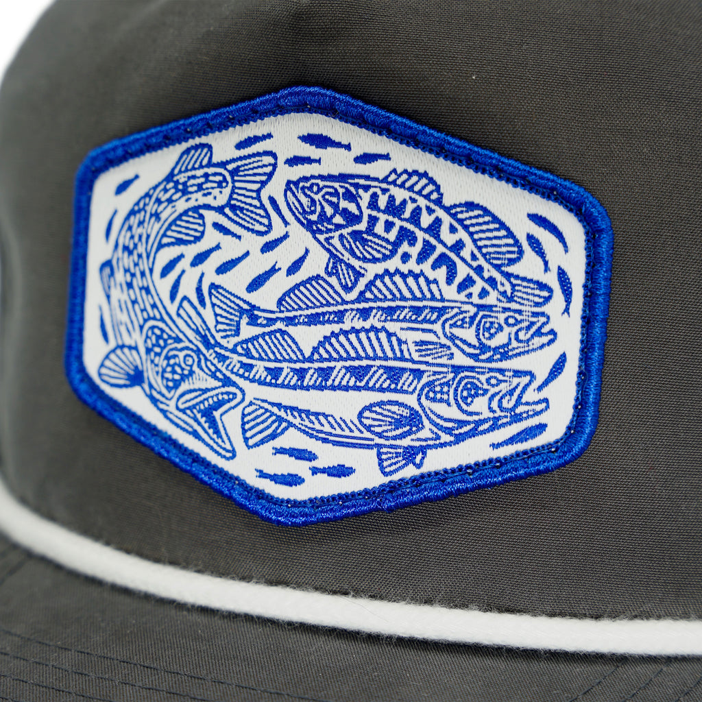 Artwork features Pike, Smallmouth and Walleye swarming baitfish